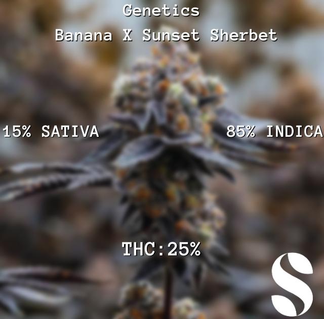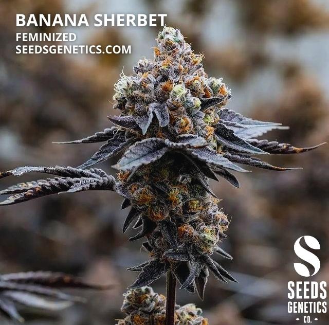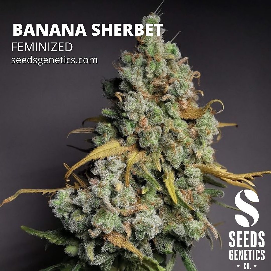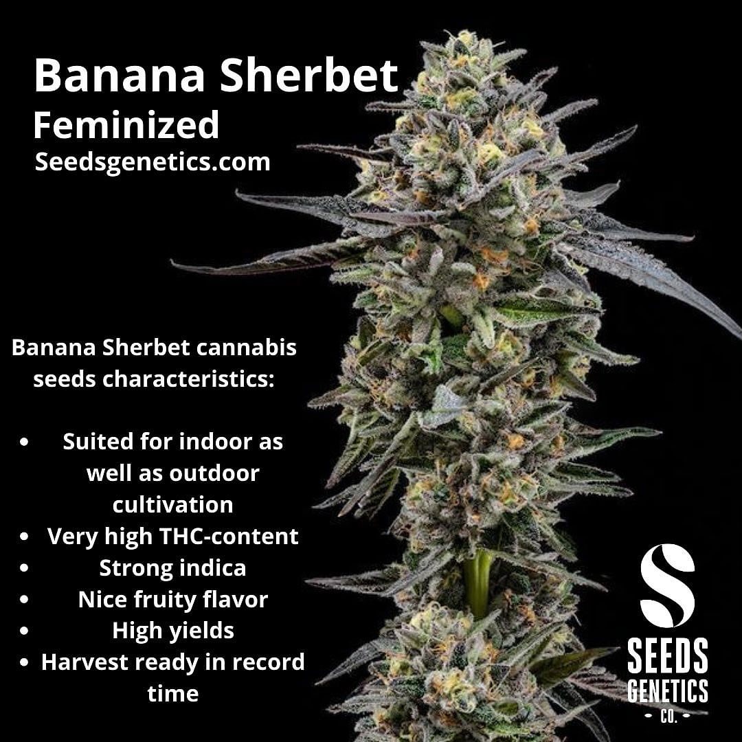 Banana Sherbet is full of powerfull characteristics. It tickles the senses with a delicious fruity taste. This breed originates from the famous Girl Scout Cookies. The intense high this breed produces is unusual for an 85% indica-dominant species. That makes this species stand out within the short-flowering American’s family.